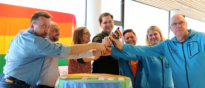 Vid en ceremoni i Stadshuset i dag firades att antivåldcenter, fältarna och mansmottagningen är HBTQ-certifierade. Stafettpinnen lämnades sedan över till ung fritid som inlett sin certifiering.