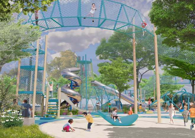 Önskemålen som kom fram i dialogerna med barnen är att de på den nya lekplatsen vill komma högt upp i luften, studsa på studsmatta och kunna röra sig i ett flöde. Därför kommer det finnas bland annat en nättunnel ovanför marken, rutschkanor och klätternät. Det kommer också att finnas traditionella gungor och sandlåda.