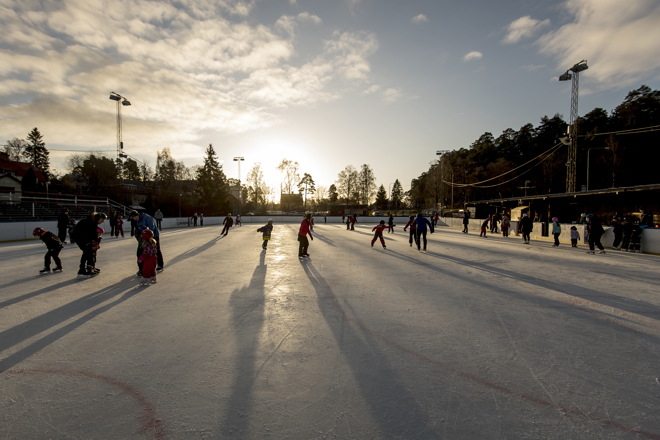 Vår driftpersonal är på plats och bjuder på korv, varm choklad, julmusik och ser till att vi har en fin is att åka på om man är skridskosugen.