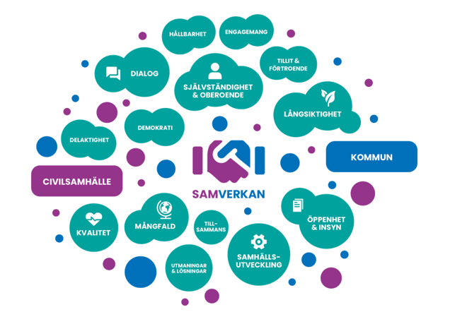 Samverkan mellan kommunen och det civila samhället bygger på demokratiska värderingar och respekt för alla människors lika värde och rättigheter. Mångfald, jämställdhet och jämlikhet är centrala ledord. Alla organisationer som i ord och handling ställer sig bakom dessa värderingar och vill delta i ett gemensamt utvecklingsarbete välkomnas att ansluta till samverkansöverenskommelsen.