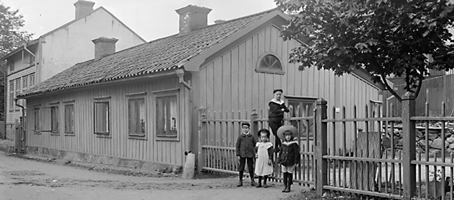 Huset på ursprunglig plats på Ekdahlsgatan år 1909. Fotograf: Bernhard Lundgren.