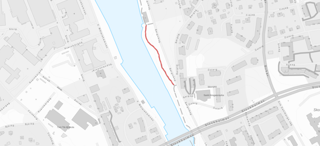 Del av gång- och cykelvägen längs med kanalen vid Bergviksgatan är avstäng på obestämd tid.