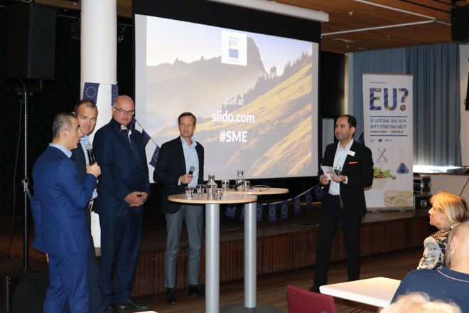 Under torsdagen den 19 oktober gavs tillfälle för små och medelstora företag att få information om investeringsmöjligheter. I panelen fanns representanter från Almi, Swedbank, EU-kommissionen och Europeiska investeringsbanken.