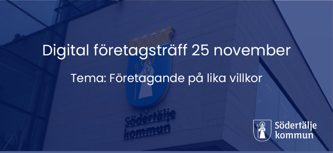 Digital företagsträff med tema: Företagande på lika villkor. Tid: 25 nov, kl. 09.00-10.00 Plats: Zoom, länk skickas dagen innan