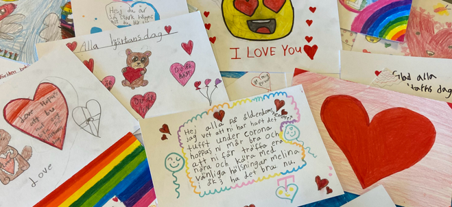 Alla hjärtans dag är här och för åttonde året i rad driver Kultur 365 initiativet "Kära hjärtanes". 5500 kort har skickats till Södertäljes för- och lågstadieklasser där barnen sedan fått måla och skriva hälsningar på baksidan av korten. Korten har idag delats ut till stadens seniorer runtom på äldreboednen, dagverksamheter, mötesplaster, hemtjänst och även svenska kyrkan.