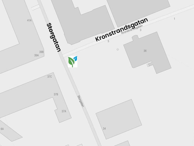 Se markering på kartan var trädet står. I samband med att vi tar bort den sjuka linden kommer vi även att fälla döda träd längs Storgatan.