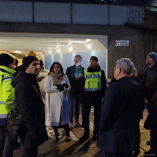 I början på november ordnade Södertälje kommun, Södertälje City och polisen två trygghetsvandringar vid centralstationen i Södertälje.