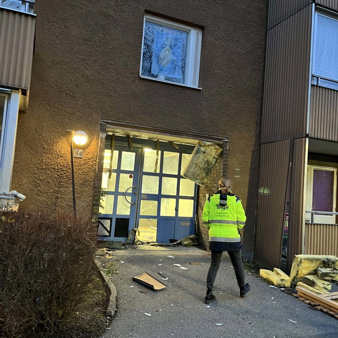 Telge bostäder har efter sprängningen knackat på hemma hos de berörda hyresgästerna under måndag förmiddag. Bostadsbolaget har på så vis nått cirka hälften av de boende med kommunikation på svenska, suryoyo och arabiska. Området runt porten är förstört, även inpasseringssystemet men bolaget erbjuder tillfälliga lösningar i väntan på reparation.