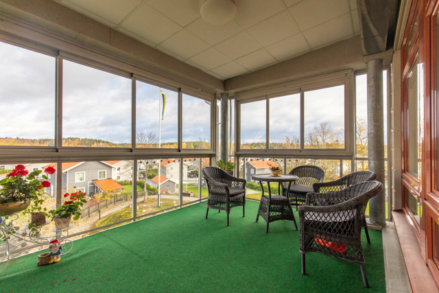 Boendet har generösa ytor som underlättar för dig som sitter i rullstol eller för som använder rullstol för att ta dig fram. Varje bostadsgrupp har gemensamma utrymmen med kök, matrum och ett trivsamt vardagsrum. Via köket kommer du ut till vår inglasade balkong med sköna sittgrupper och infravärme som låter oss uppleva årstiderna på nära häll även om du inte önskar lämna boendet. Under sommarhalvåret skapar vi harmoni på balkongen med rogivande gröna växter.
