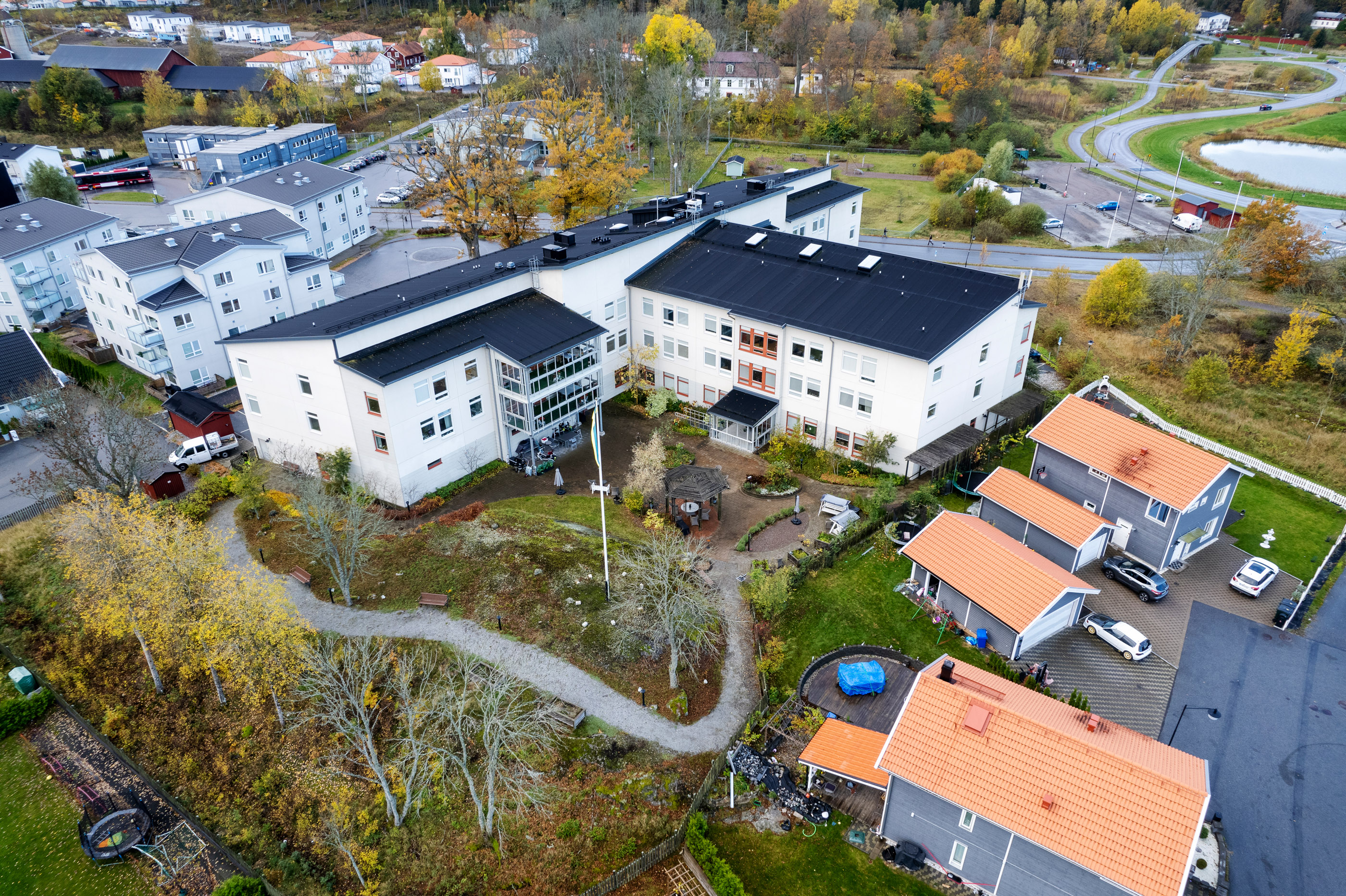 Glasberga vård- och omsorgsboende ligger centralt i Glasberga sjöstad i utkanten av Södertälje med gångavstånd till Glasbergasjön. I närheten finns också fina grönområden med promenadvänliga gångvägar. Boendet består av 68 lägenheter och avdelningar med såväl demensinriktning som somatisk inriktning. Fotograf: Liza Simonsson