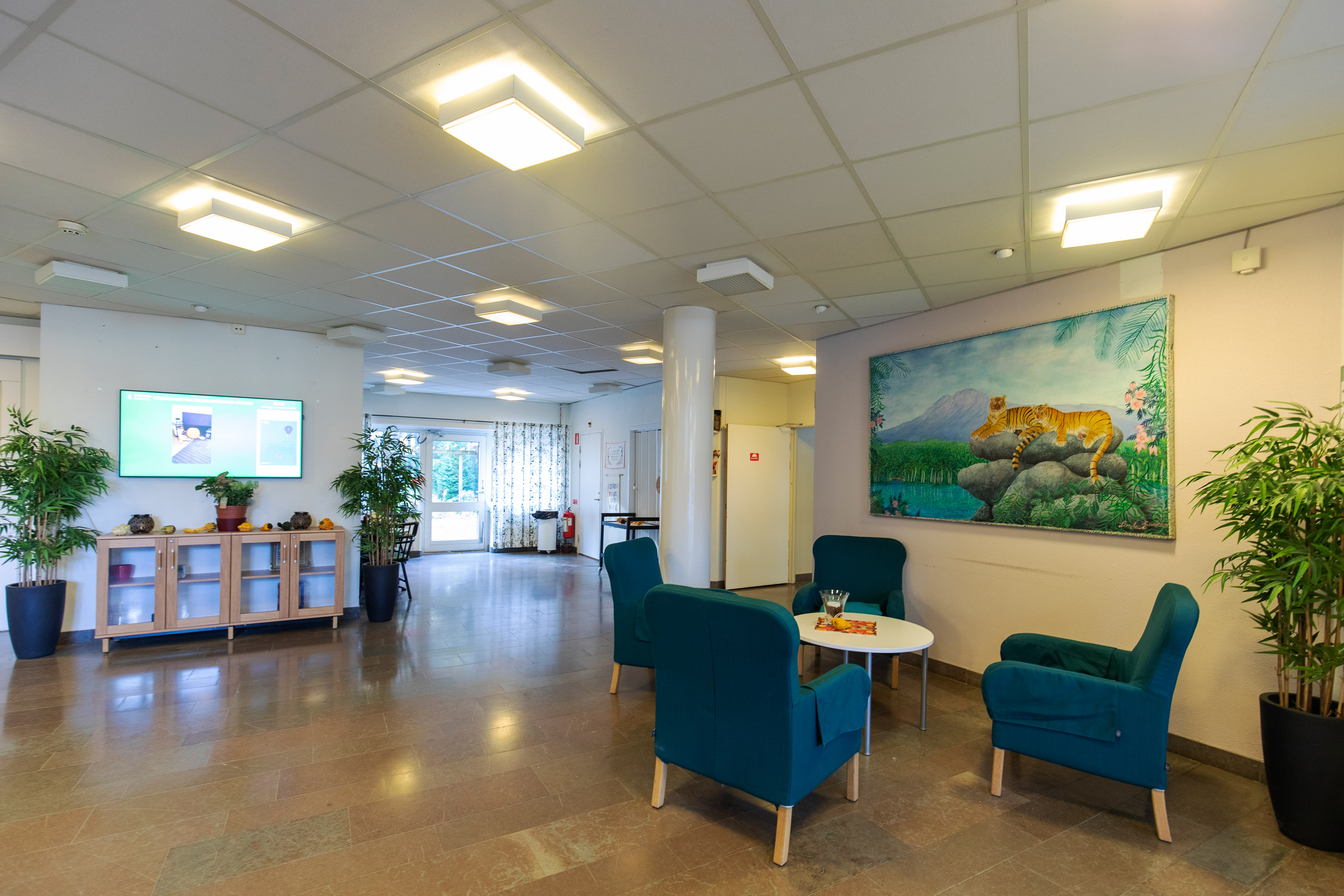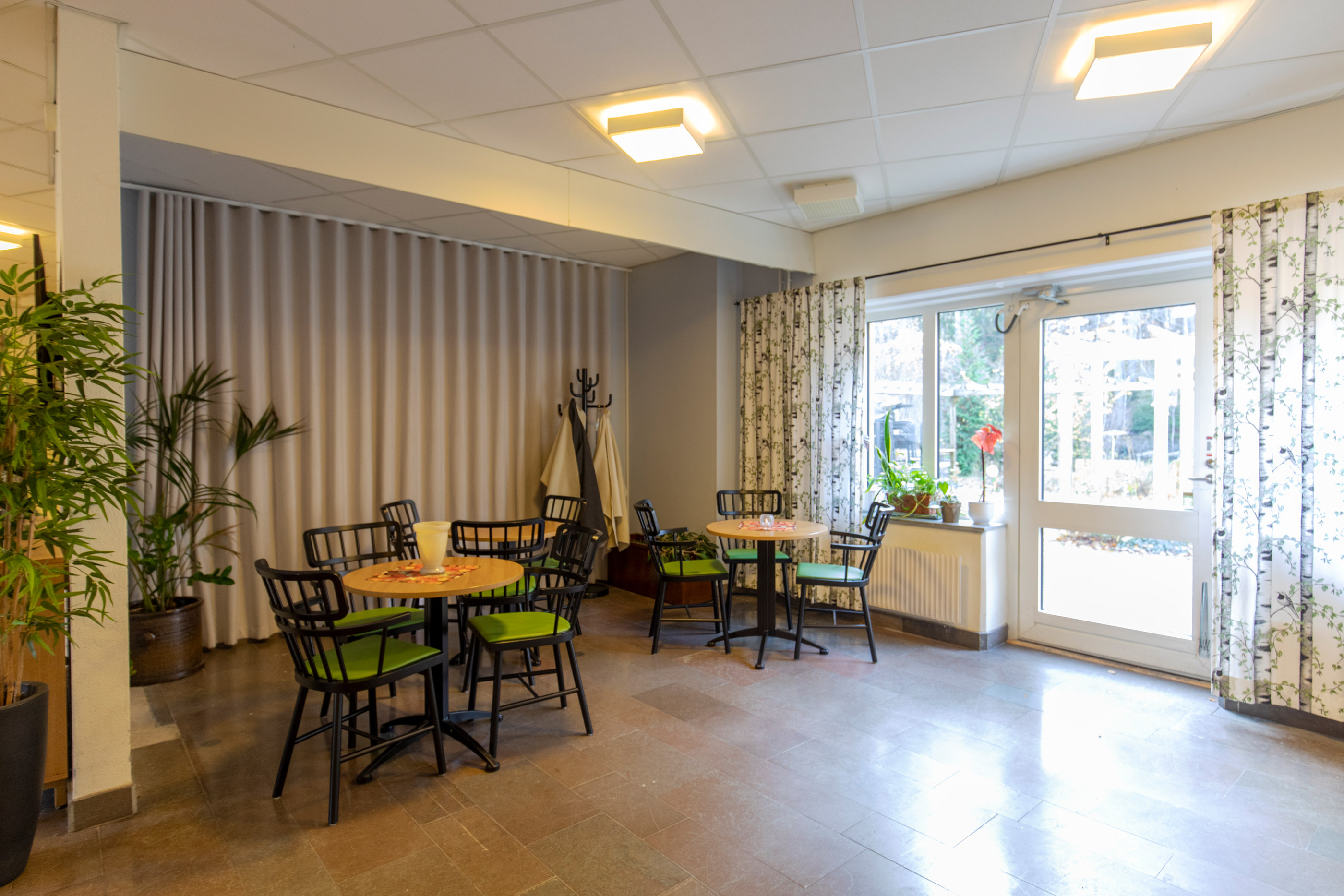 Vårt boende har gott om umgängesytor både inne och ute. Varje våningsplan har två bostadsgrupper och varje bostadsgrupp har gemensamma utrymmen med kök, matsal och vardagsrum. Från bostadsgrupperna har du tillgång till en stor balkong, där vi kan njuta av utevistelse när vädret tillåter och du själv önskar.