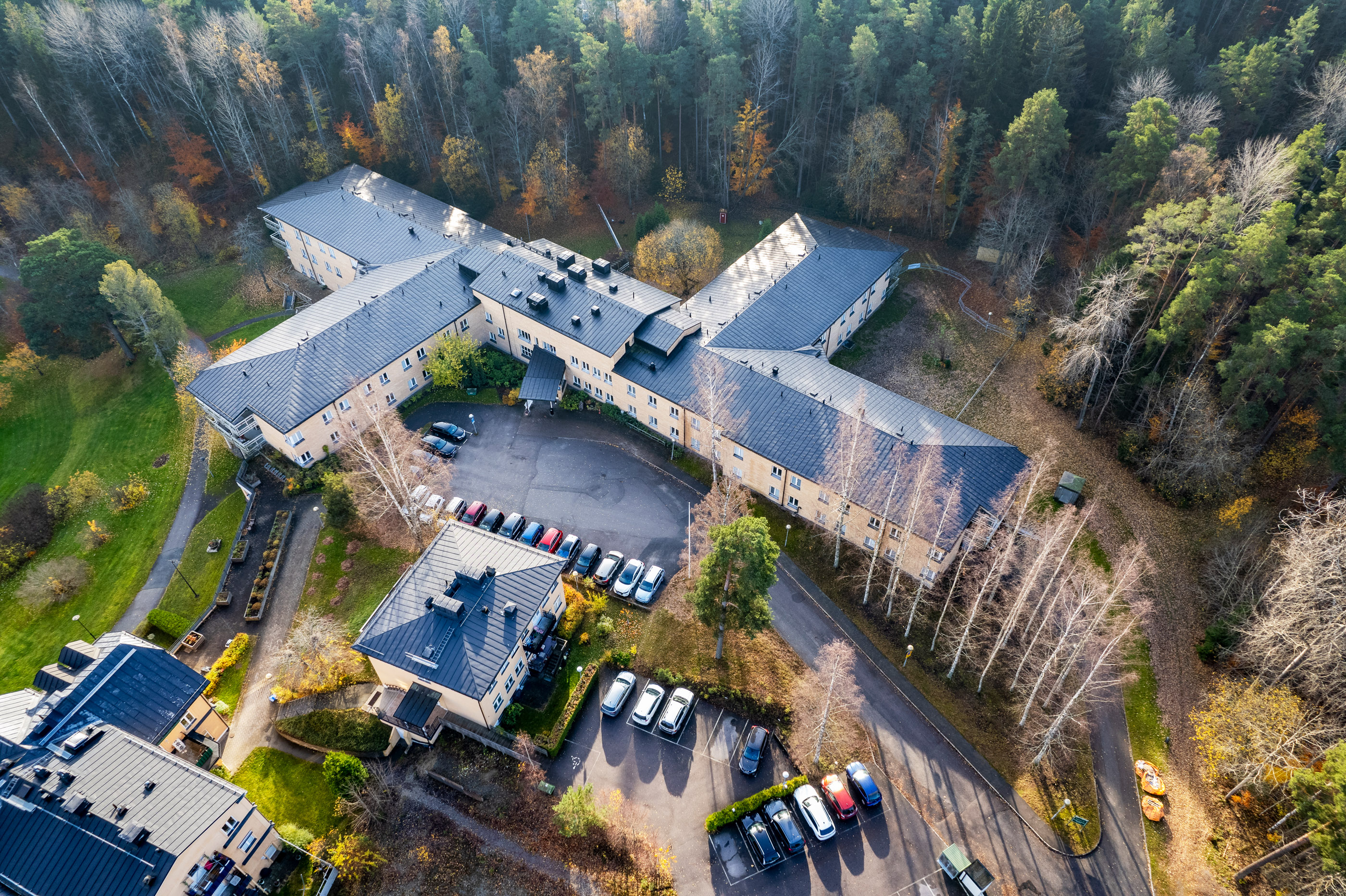 Heijkensköldska gården vård- och omsorgsboende ligger naturskönt i stadsdelen Lina med närhet till både skog och vatten. Boendet består av 68 lägenheter och har avdelningar med såväl omvårdnads- och demensboende. Fotograf: Liza Simonsson.