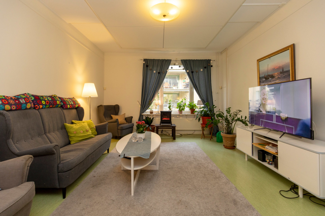 Våra lägenheter är ljusa och rymliga med stort, handikappvänligt badrum med dusch samt ett litet pentry med kokplatta och kylskåp.