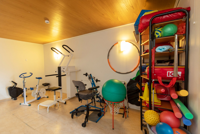 - Två arbetsterapeuter, två fysioterapeuter och fyra sjuksköterskor dagtid måndag till fredag, övrig tid finns patrullen tillgänglig, för att tillgodose de hälso- och sjukvårdsinsatser som finns. En gång i veckan besöker en läkare boendet som samarbetar med våra sjuksköterskor.
