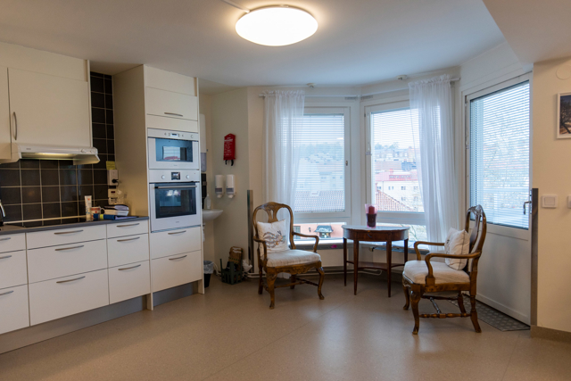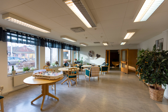 På entréplan har vi fler gemensamma utrymmen och en samlingssal där många av våra aktiviteter sker.