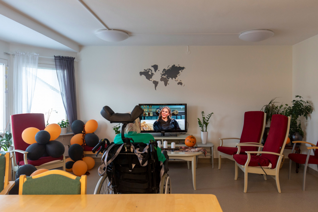 Vi har en Facebook-sida och informationsskärmar på entréplan där vi informerar om vardagen på boendet.