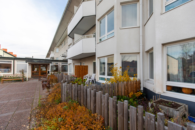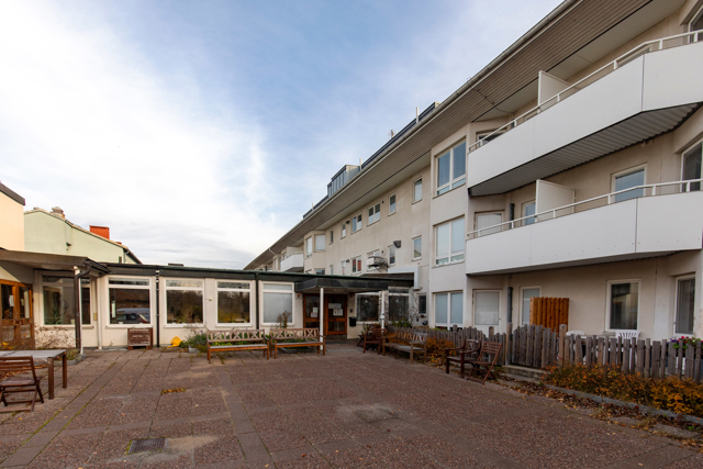 Oxbackshemmet ligger centralt i Södertälje med gångavstånd till buss och pendeltåg. Boendet består av 48 lägenheter fördelat på sex bostadsgrupper, varav 16 lägenheter är avsedda för personer med demenssjukdom. Fotograf: Liza Simonsson
