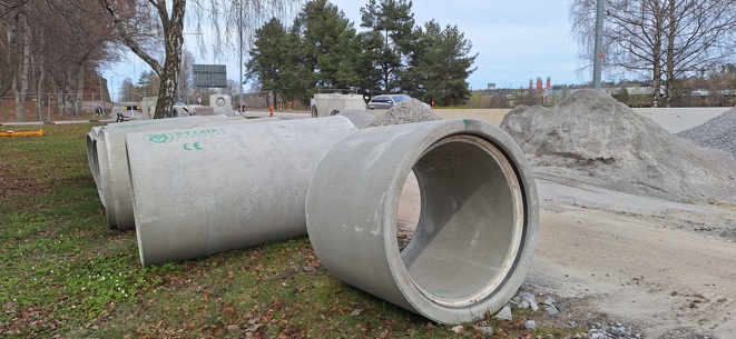 – De här dagvattenrören har kapacitet att leda bort stora mängder regnvatten vid skyfall, så kallade 100‑årsregn, och är en viktig del i klimatanpassningen av området, säger Emelie Weckström, byggprojektledare Södertälje kommun.