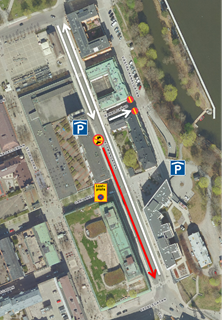Köpmangatan mellan Kanalgränd och Ekdalsgatan, i södergående riktning, är fortsatt enbart tillåten för buss, taxi och varutransporter.