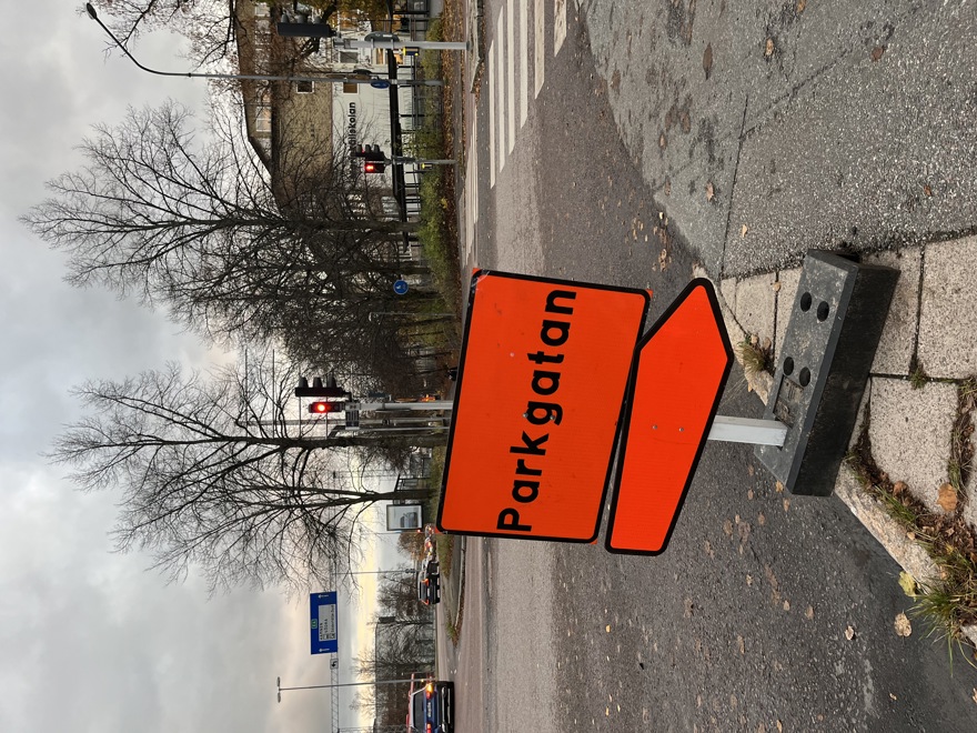 Om man ska till Parkgatan 4-12 eller parkeringen vid Stadshuset får man köra via Mariekällgatan och Gröna gatan. Vänligen följ orangea vägvisningsskyltar.